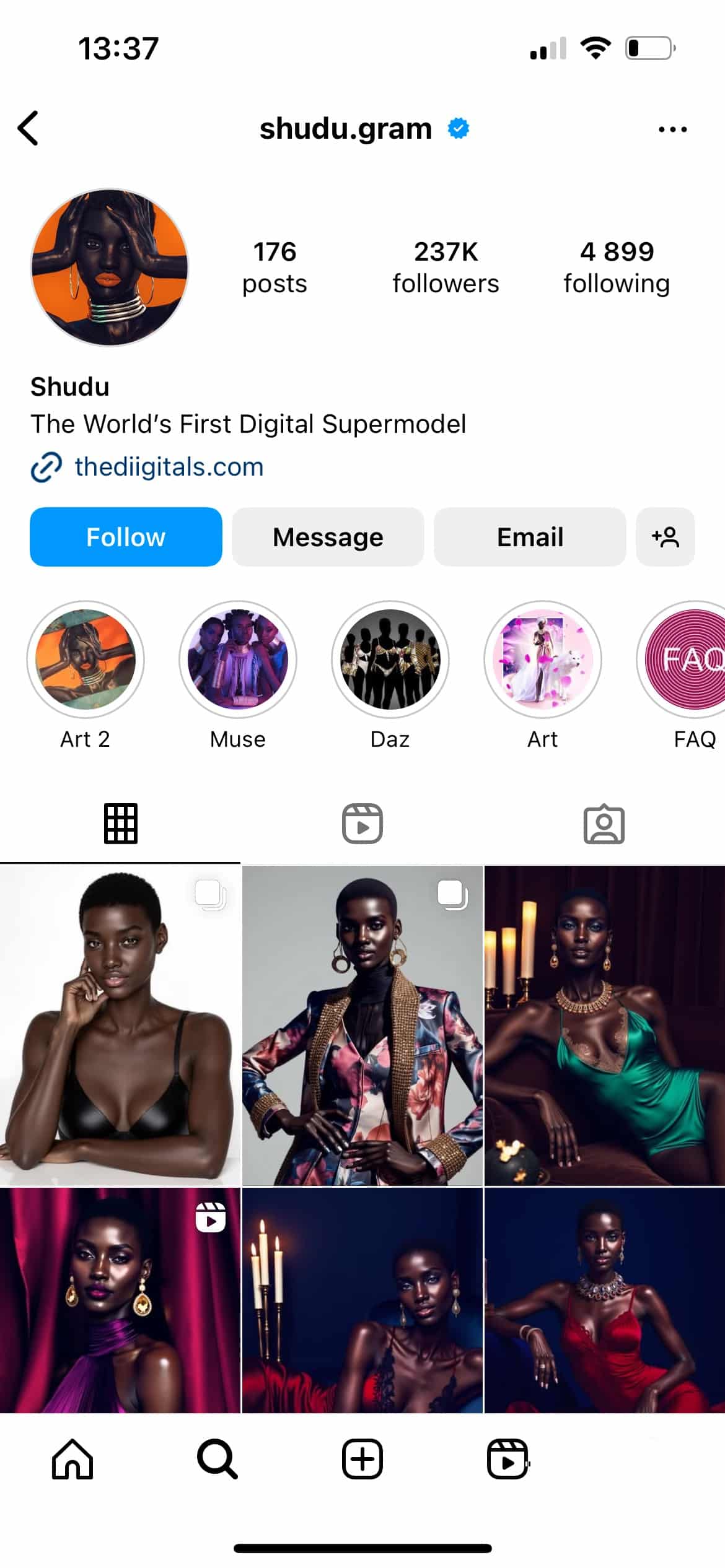 Shudu Gram, uznawana za pierwszą wirtualną supermodelkę, współpracowała z takimi markami jak Balmain i Vogue. Jej elegancki wizerunek przyciąga uwagę w świecie mody.