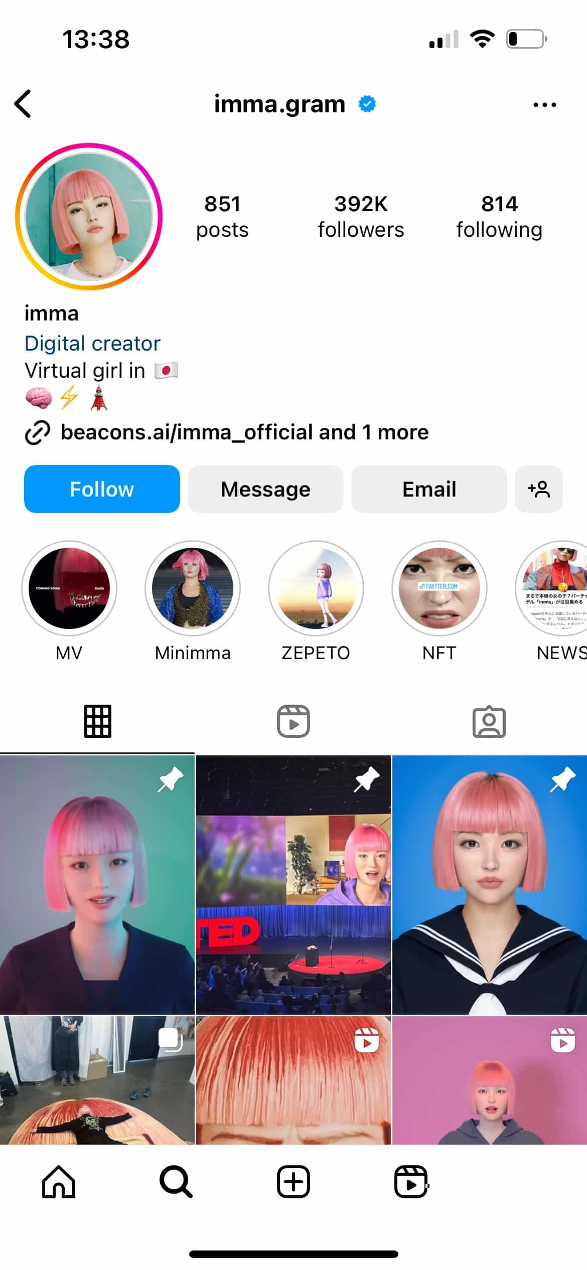 Imma, wirtualna influencerka z Japonii, znana jest ze swojego unikalnego stylu i współpracy z markami takimi jak Porsche Japan, Ikea i Puma.